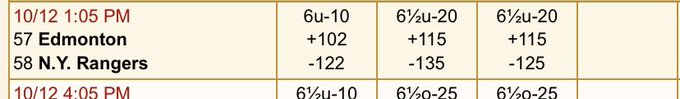 “Lundswiss is playing tomorrow. Over-under is a full goal higher than the normal -5.5. Rangers GAG line and Lundswiss starting means to hammer the over.”