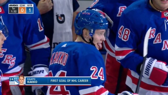 Kaapo Kakko scored his first ever NHL goal today, beating Edmonton goalie Mike Smith, late into the first period. After the goal, it felt like the Rangers took the rest of the game off.