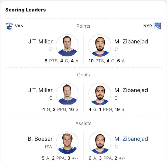 I don’t have the stats in front of me, but for twenty minutes, the Rangers just kept shooting and were in the Canucks defensive zone. I know Markstrom finished up with 38 saves on 40 shots. I would reckon to think that 20+ Ranger shots came in this third period.