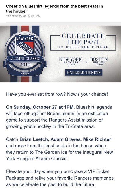 If you’re on the Rangers email list, you probably got bombarded with emails in the last 24 hours. I got four separate emails from the team. Here they are:
