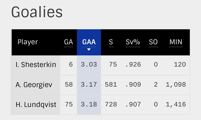 -his numbers drop so badly over a consistent period that it can’t be justified. While he has certainly lost a step, his season numbers are, as you’ve noted, still somewhat close to Georgiev (excluding wins, but that will be put down to “team effort” as opposed to just on Lundqvist)