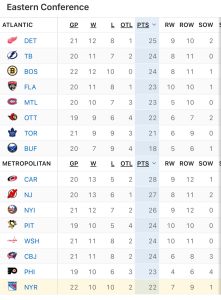 I know that I keep saying in this space that most people first start paying attention to the standings around Thanksgiving time – but even so – we’re now only a week out from T-Day. Furthermore? Then all of the Rangers’ futility at M$G this season is now showing up in the standings – and where all of that nonsense, the “it’s still early,” junk has caught up. Another news item submitted for your disapproval? Then check out the GAMES PLAYED category – as in some cases – and the Blueshirts have played in three more matches when compared to their fellow Metrosexual Divisional rivals. Photo Credit: ESPN