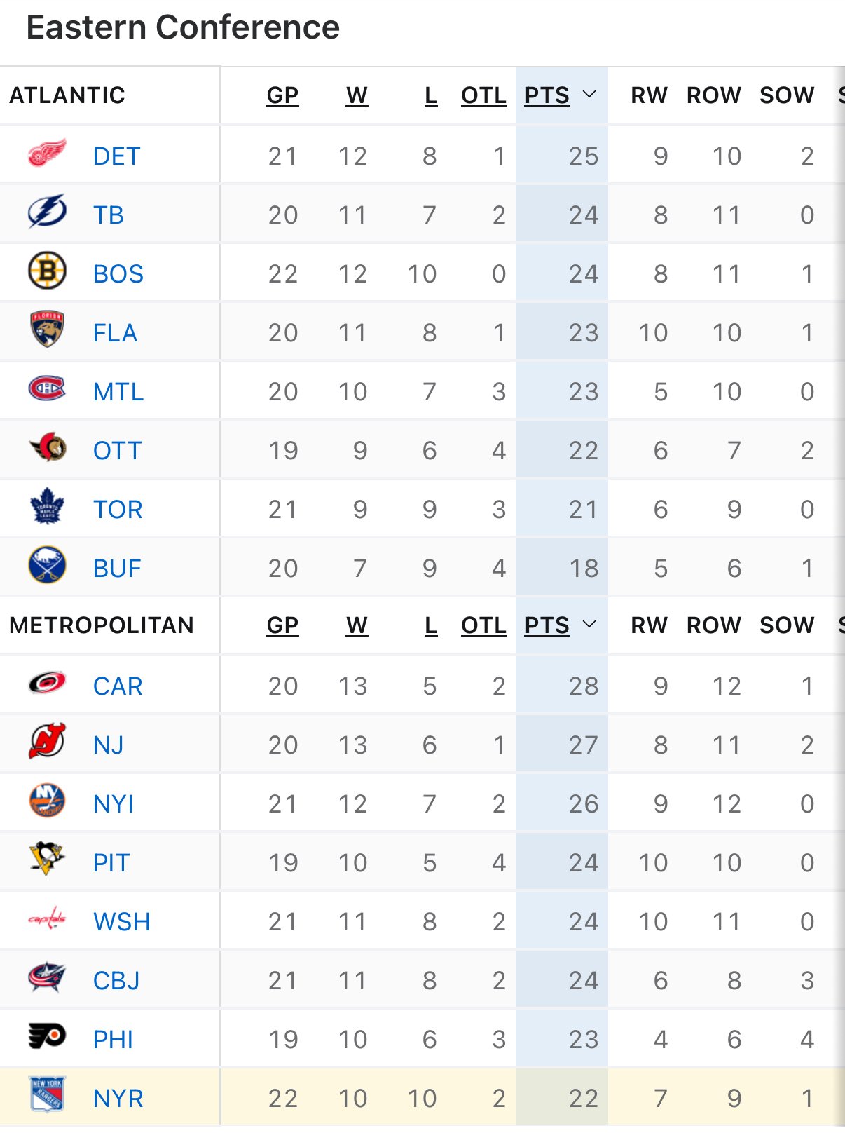 Then for the rotten cherry on top, then following this 6-3 drubbing in Denver, and as a result of all other games played on Thursday, November 20th, too – and the Rangers now sit dead-last in the Metropolitan division: