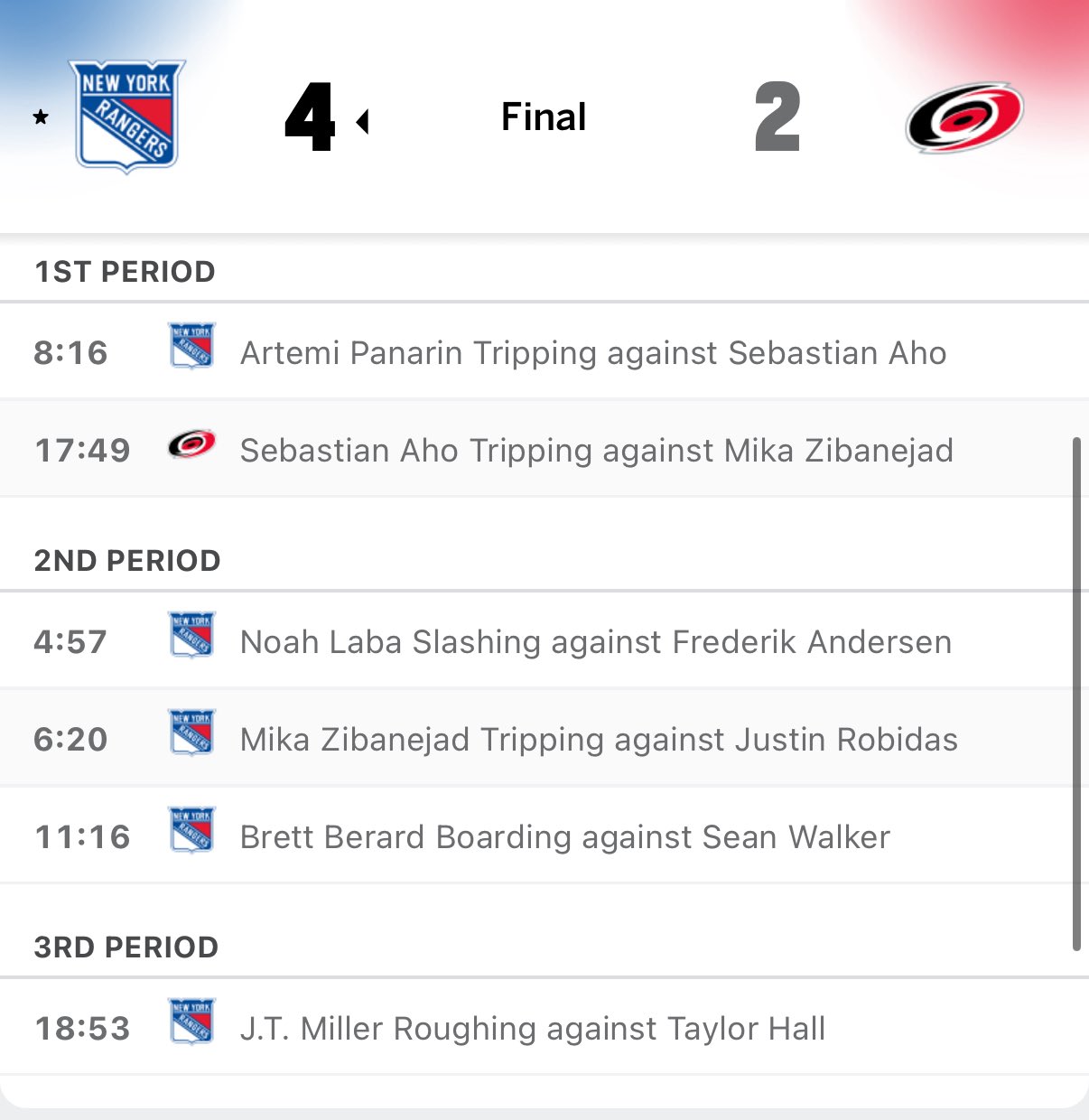— Canes out-shooting them, 14-3, but once again, it’s the Blueshirts’ bottom-six (and the top-pair & goalie) that’s carrying them.