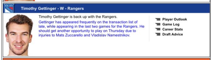 With these two injuries, the Rangers recalled Timothy Gettinger, who has been moved around faster than a ping-pong ball off the paddle of Forest Gump.