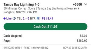 But really, the Rangers SHOULD have won the game – and the Vegas bookmakers thought so too -as the Blueshirts were 2:1 favorites, while also being favored -125 (risk $125 to win $100) to win by two or more goals.