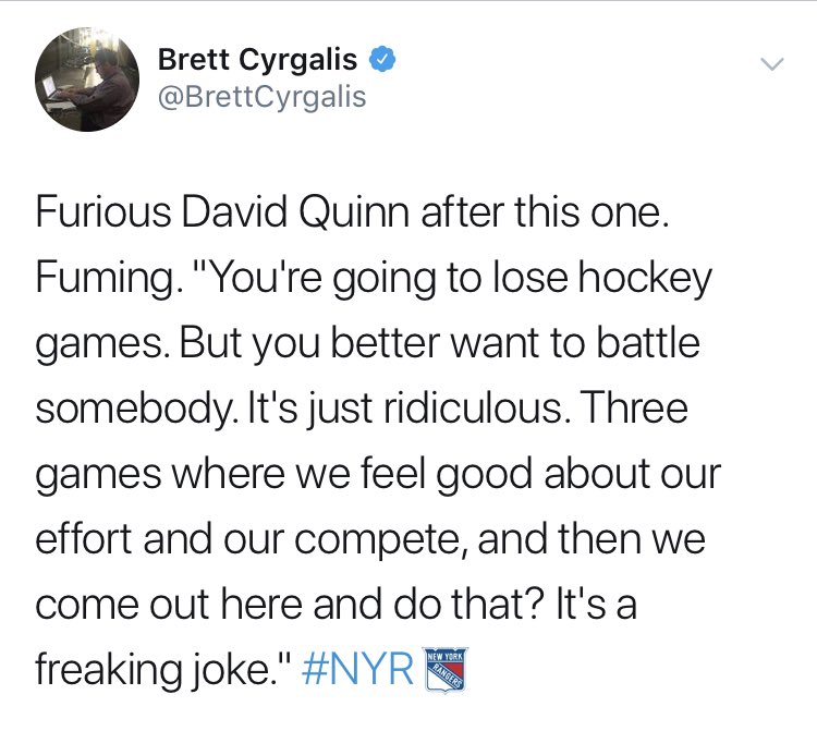 — If it wasn’t for the current rules that the NHLPA bargained for, I think Quinn would’ve bag skated these guys right after this game.