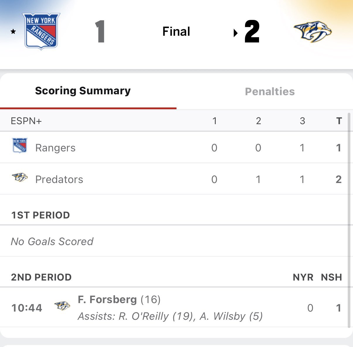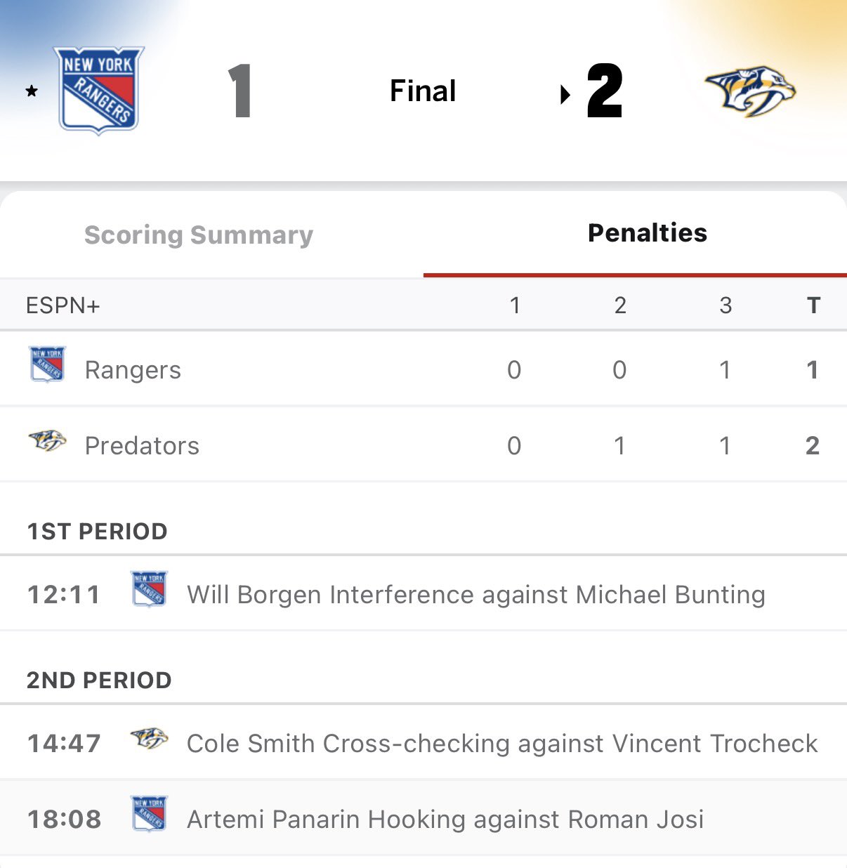 Heck, and just like the Rangers, and the Predators had played the day before too, in a 5-3 victory over the Toronto Maple Leafs.