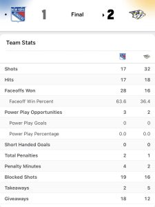 Predators own the Rangers, 2-1, your final – and another disgusting loss to a league bottom-feeder – where soon enough – is where the Blueshirts will be too.