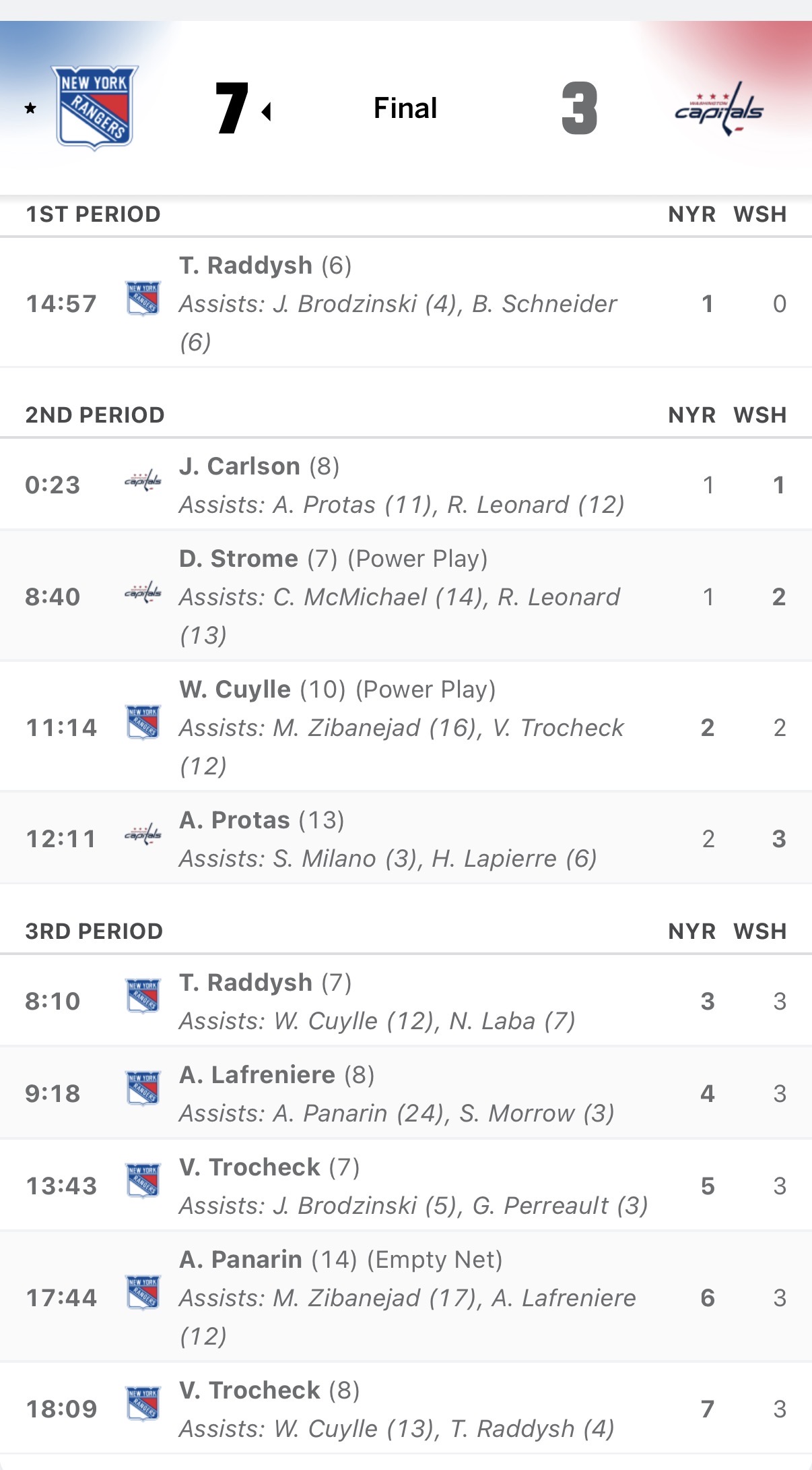 After all, then Trocheck (2-1-3), Panarin (1-1-2) and Lafreniere (1-1-2) posted some gaudy scoring totals.