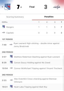 In turn, the Rangers received a four-minute uninterrupted power-play – and where the Capitals’ PK, via two dangerous odd-man rushes, had the best scoring opportunities during this time.