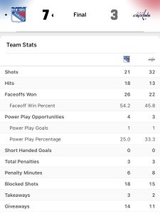 While the home team was far superior than the road team in the first period; it were the Rangers that were better than the Caps where it mattered most – the scoreboard.