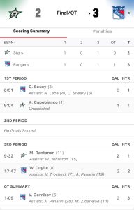 And let’s be honest – when Soucy hit the box – then no one saw the Rangers scoring the first goal of this game – and just like how no one saw the Blueshirts emerging victorious when trailing by a goal with 3:00 left in regulation either!