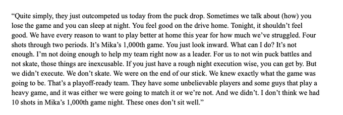 Sully, in his post-game remarks, called out the team’s lack of effort – but was careful not to go scorched earth – as instead – and he did so in a polite manner.