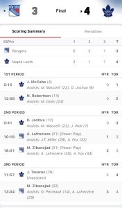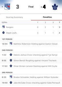Leafs 4, Rangers 3.