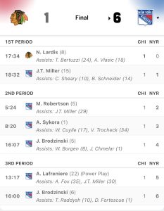 6-1, Blueshirts over Blackhawks, your final – and where for one night – then you were able to smile.