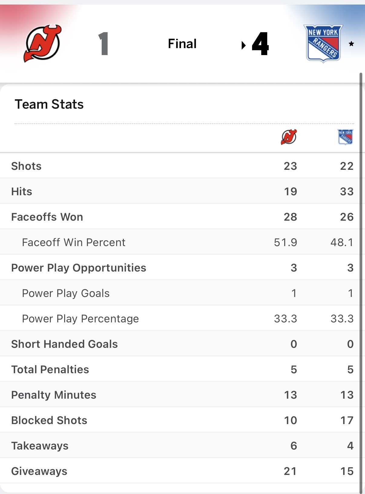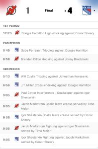 The Devils’ PK bested the Blueshirts here – as they had two scoring chances during this.