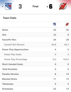 Once again, and they were being out-shot at a 2:1 ratio, as the Devils had amassed 30 SOG to the Rangers’ 15.