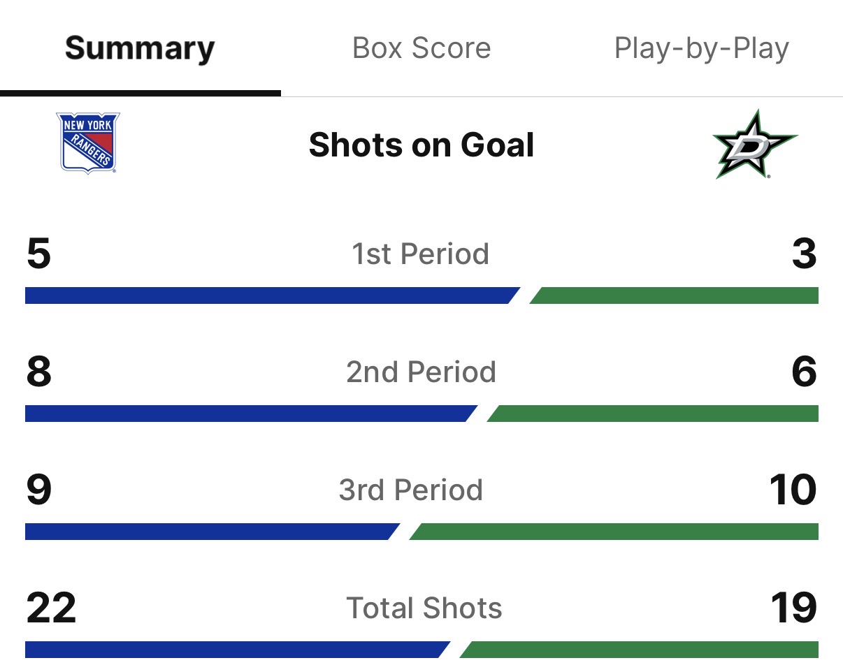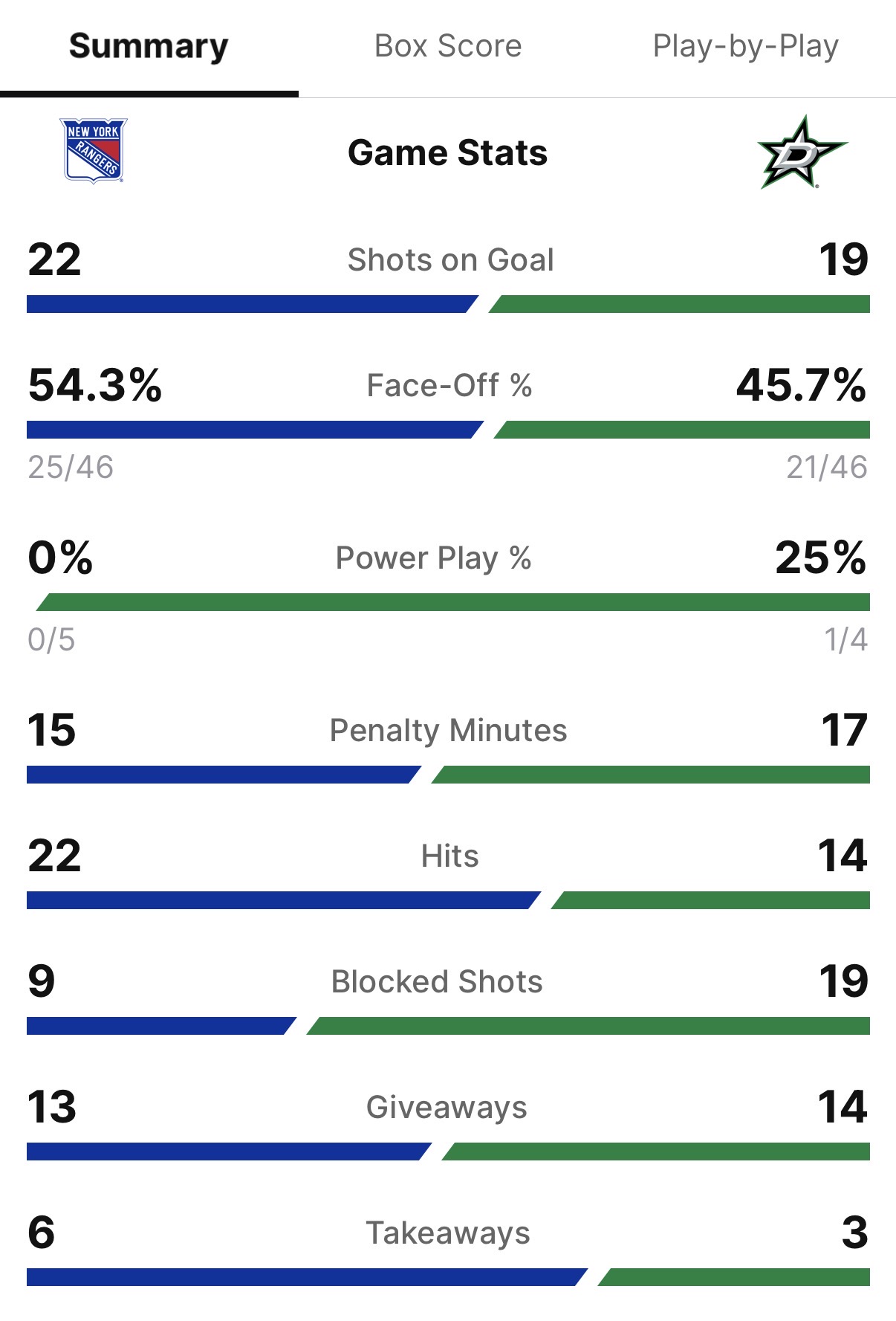 Again, the Rangers went 0/3 on the power-play and could never finish despite a glorious amount of scoring chances.