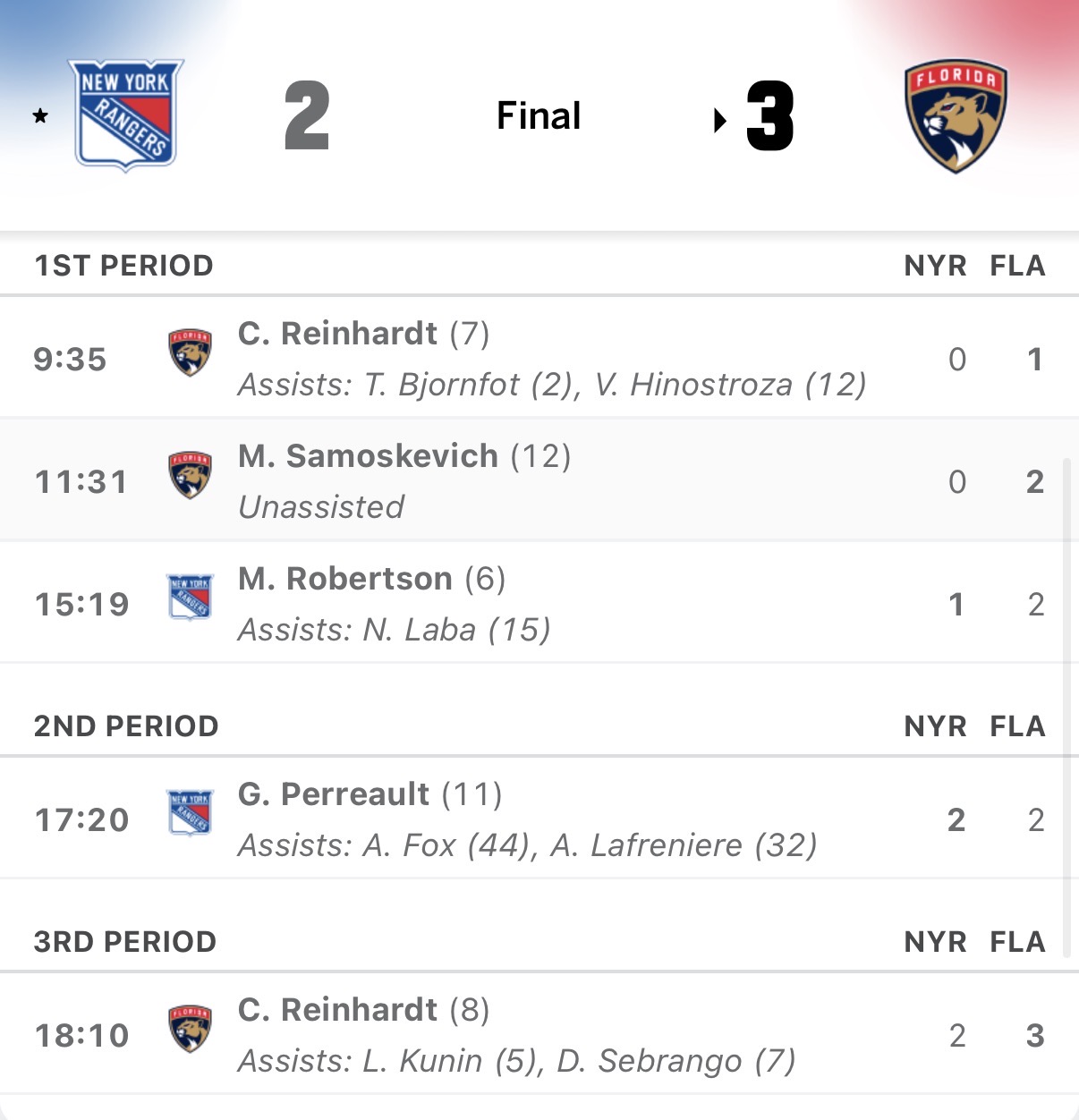 — Feels like FLA is tanking more than #NYR – blew a two goal lead.
