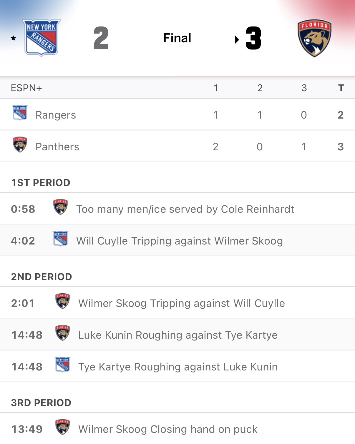 In-between that, and the Blueshirts’ power-play went 0/3, including one received with just 6:11 remaining in the game, while Paul Maurice’s Cats went 0/1 on their only man-up attempt.