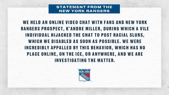 Anyway, apparently several hours after this incident on Zoom, the Rangers sent out the following:
