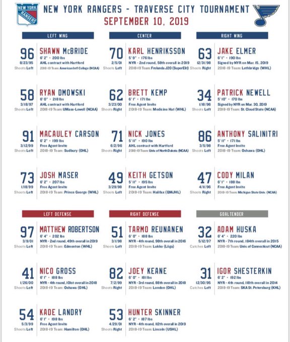 Greetings and salutations everyone and welcome to another blog here on BlueCollarBlueShirts.com. When I last left you, I recapped the first two Ranger games at the Traverse City Tournament. With the tournament now over, I figured I would check in here with my final thoughts on the tournament. In addition, I’ll also share and opine on all the latest Rangers news coming out of Rangerstown, USA.
