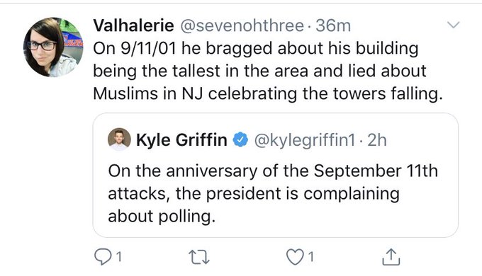 Listen, I don’t care how you feel about Trump. That said, I think we can all agree that Trump has/had nothing to do with 9/11. If there was ever a day to put the political crap on hold, it’s on the day of remembrance of the 9/11 tragedies/attacks. I can’t be any more clear here – RADICAL TERRORISTS were the direct cause of this day that will be remembered in infamy. This wasn’t the fault of any American politician. NO AMERICAN WANTED THIS!