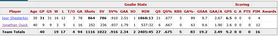 While both Quick and Shestyorkin continue to post impressive stat lines; then it’s the one thing that matters the most to them, wins, that aren’t piling up.